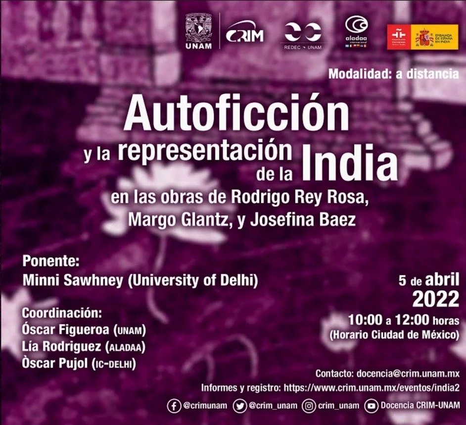 Minni Sawhney (University of Delhi) - Conferencia : “Autoficción y la representación de la India en las obras de Rodrigo Rey Rosa, Margo Glantz, y Josefina Baez”